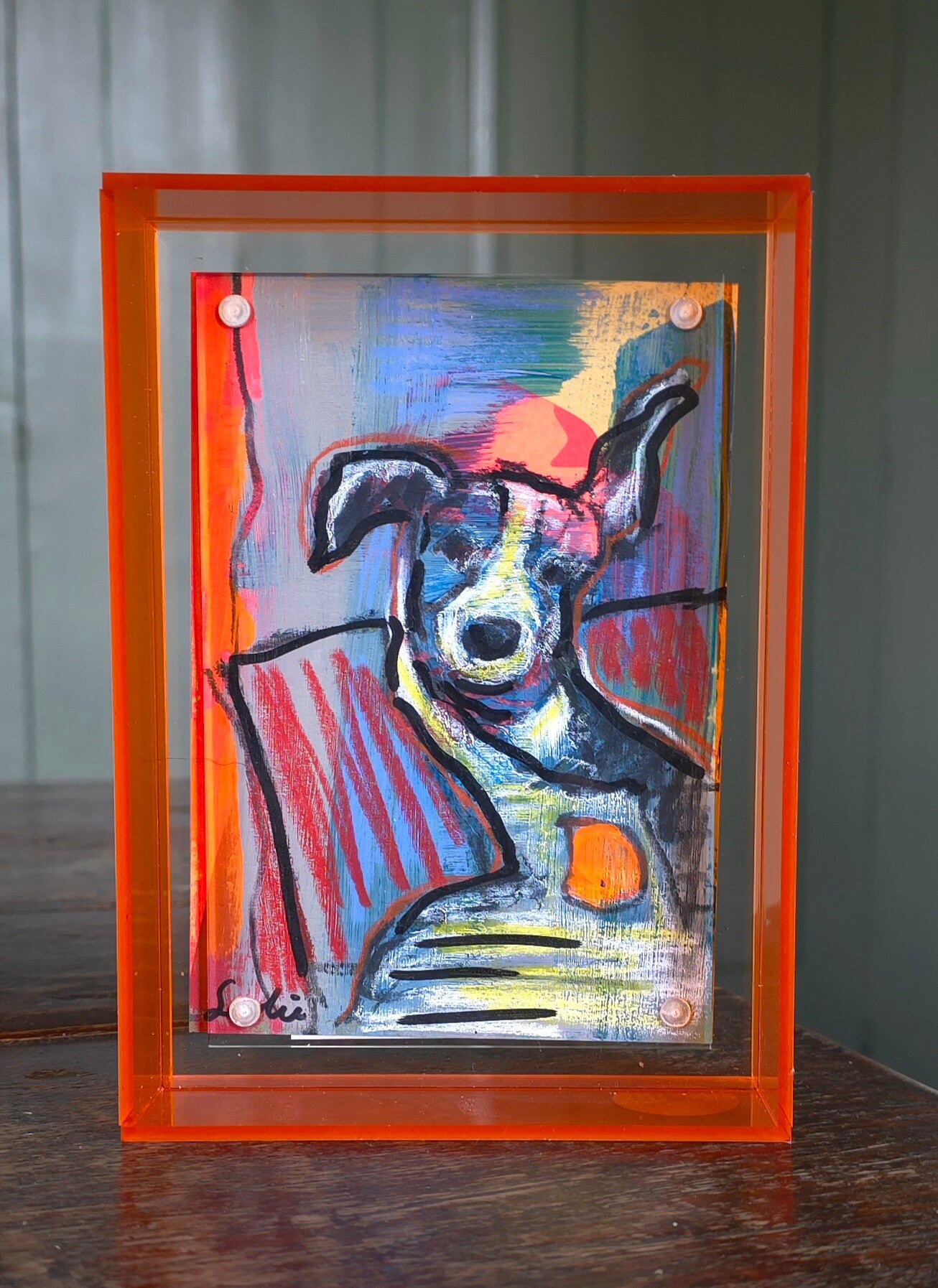 Een kleurrijk spontaan kunstwerk van een hond